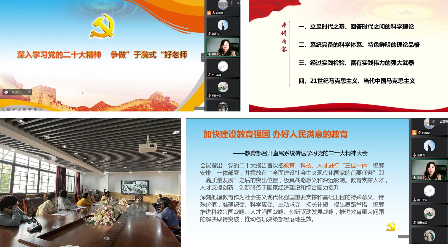 10月22日,中国共产党第二十次全国代表大会在北京人民大会堂胜利闭幕。为深入学习贯彻习近平新时代中国特色社会主义思想,激励师生们勇担时代重任,坚定不移听党话、跟党走,学校党支部结合二十大会议精神,加强教师队伍建设,引领教师树立正确的价值观、教育观、教师观和学生观,开展了向人民教育家于漪同志学习“深入学习党的二十大 争做于漪式好老师”活动,积极营造学用结合进头脑的良好氛围。